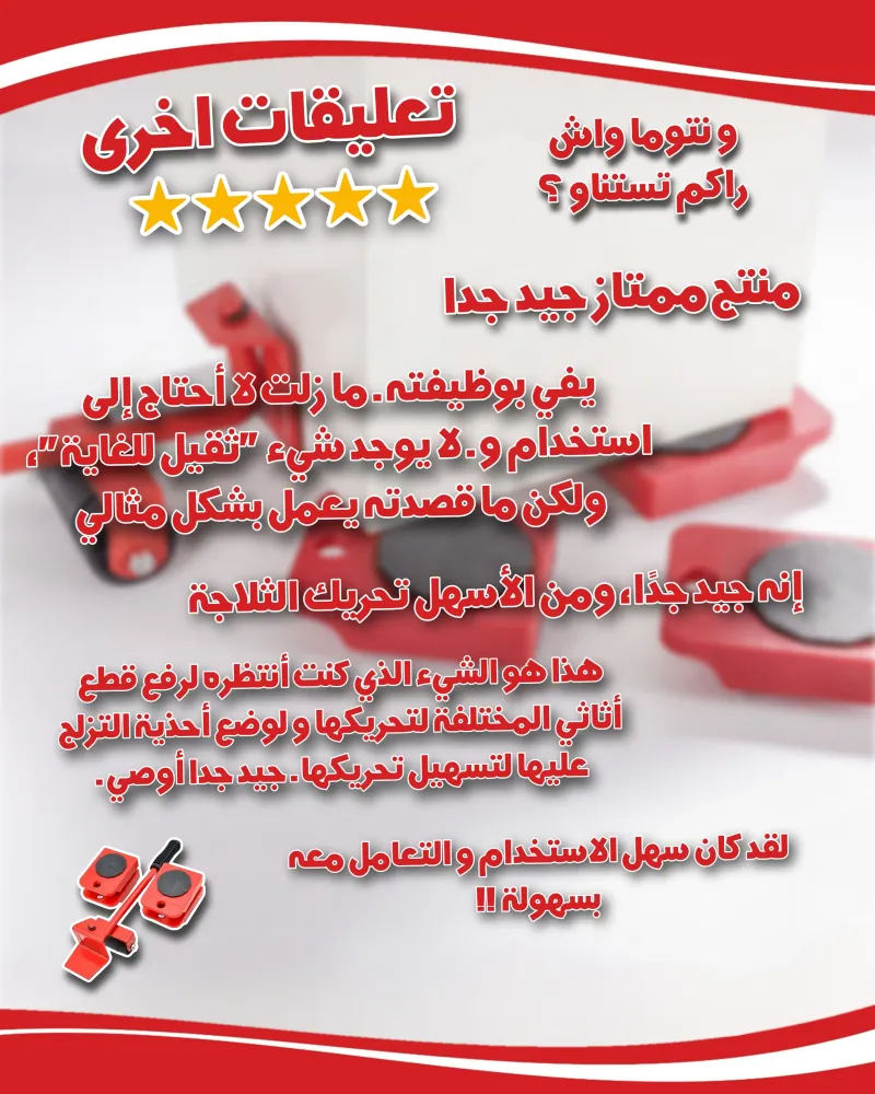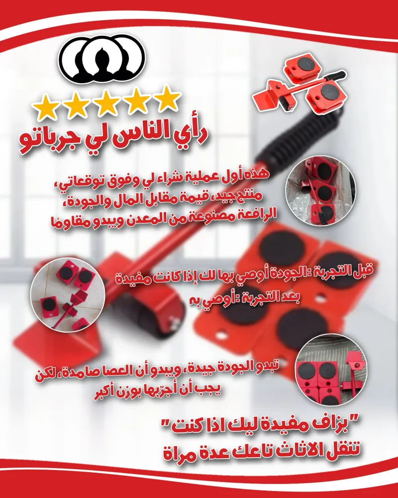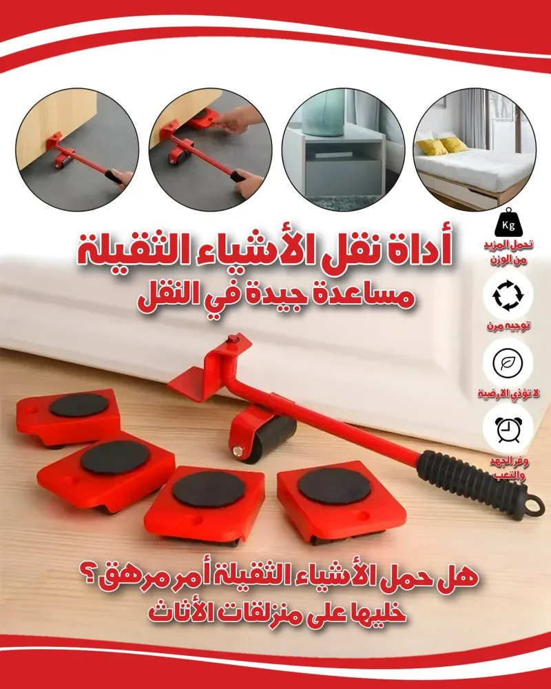 🔧 مجموعة أدوات نقل الأثاث الاحترافية 🏠💪 🌟 تجعل نقل الأثاث أسهل من أي وقت مضى! ⚙️ تتكون من 5 قطع، مزودة بعصا رفع وعجلات قوية لتحريك الأثاث الثقيل بسهولة وبدون مجهود. 🚪 مثالي للمنزل أو المكتب 🛋️، هذه الأدوات توفر لك الوقت والجهد أثناء إعادة ترتيب المساحات. ✨ الحل الأمثل لنقل أثاثك بسهولة وسرعة! 👌 وسيلة فعّالة لنقل الأثاث دون عناء!