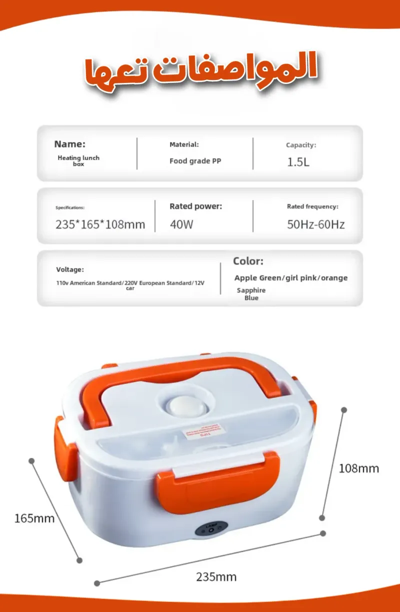 🌟 صندوق الغداء الكهربائي 🍱✨ حافظ على وجبتك دافئة وطازجة في أي وقت وأي مكان! 🌡️⚡ مع تصميم عملي وسهل الاستخدام، يمكنك الآن الاستمتاع بوجبة ساخنة سواء كنت في العمل أو في الطريق. 🥗🍛 مثالي لكل من يهتم براحة وأمان غذائه. 🍴🚗